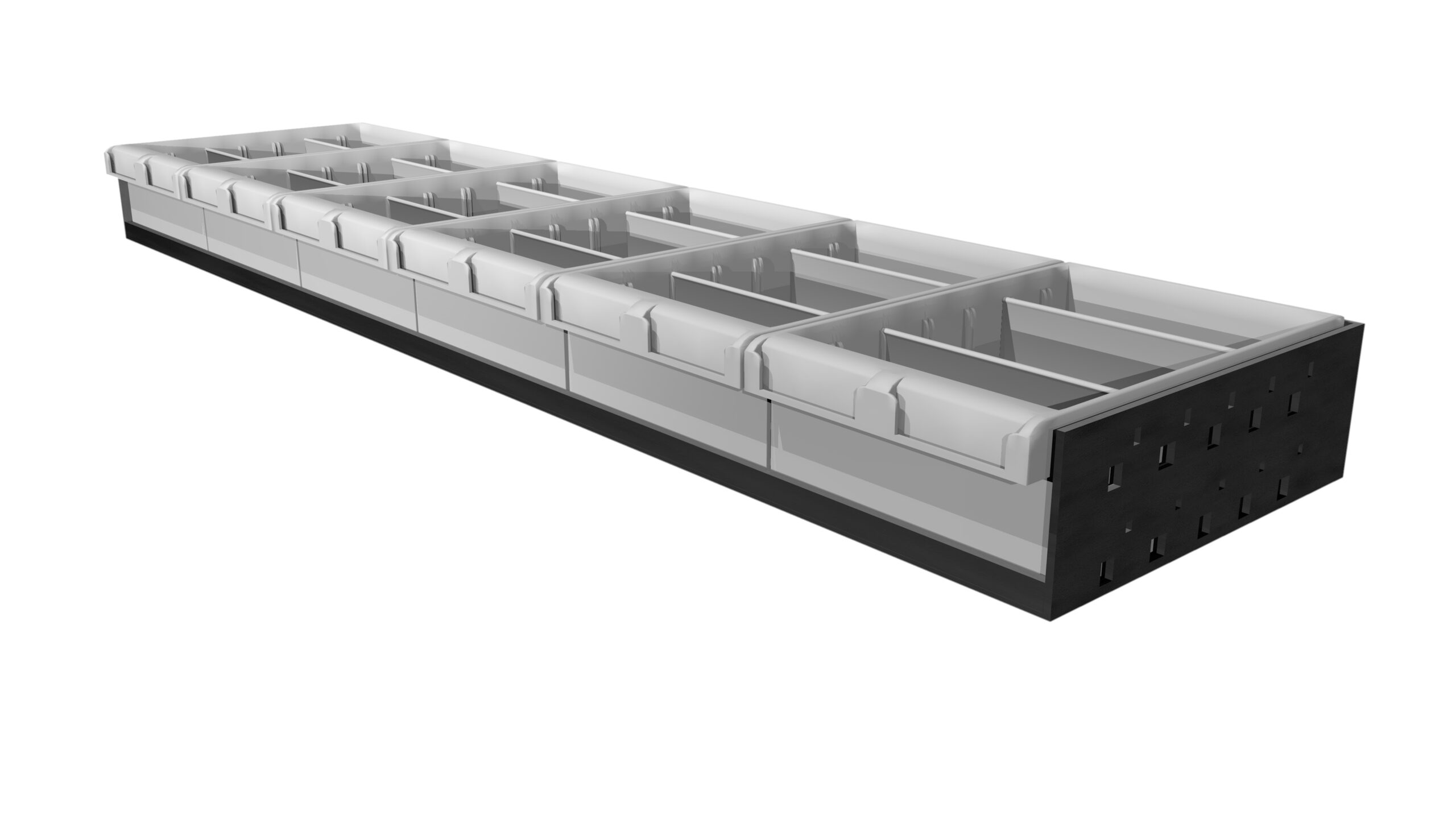 RK124PT1-SPW – BIN TRAY KIT 1240MM X 300D & 6 X GRAY PARTS BOX 200/100/300 #1H-024 & MOUNTING BKTS
